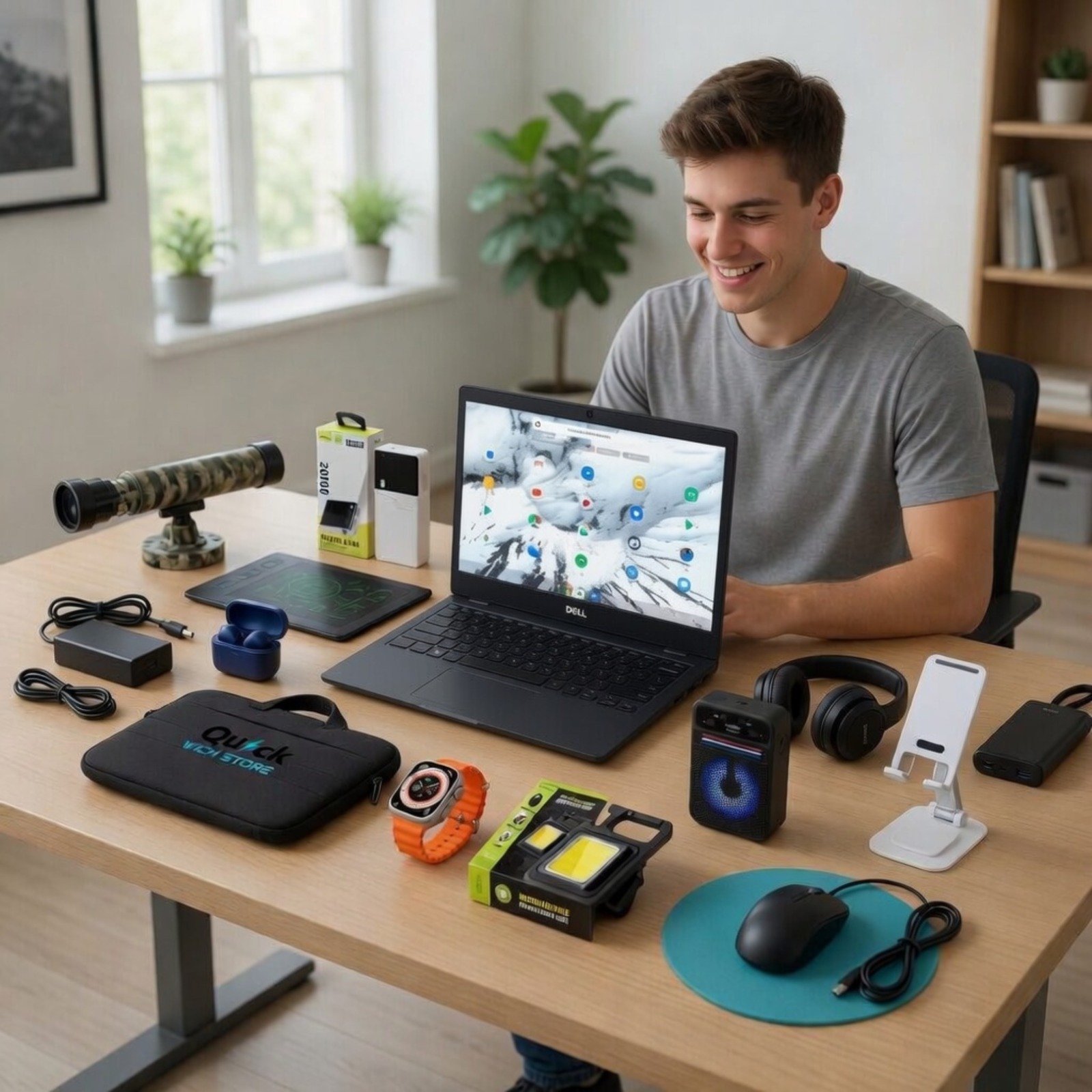 + Free Shipping(15 in 1 Offer) Mouse + Charger + Bag + Earbuds + Smartwatch and my more see in picÂ